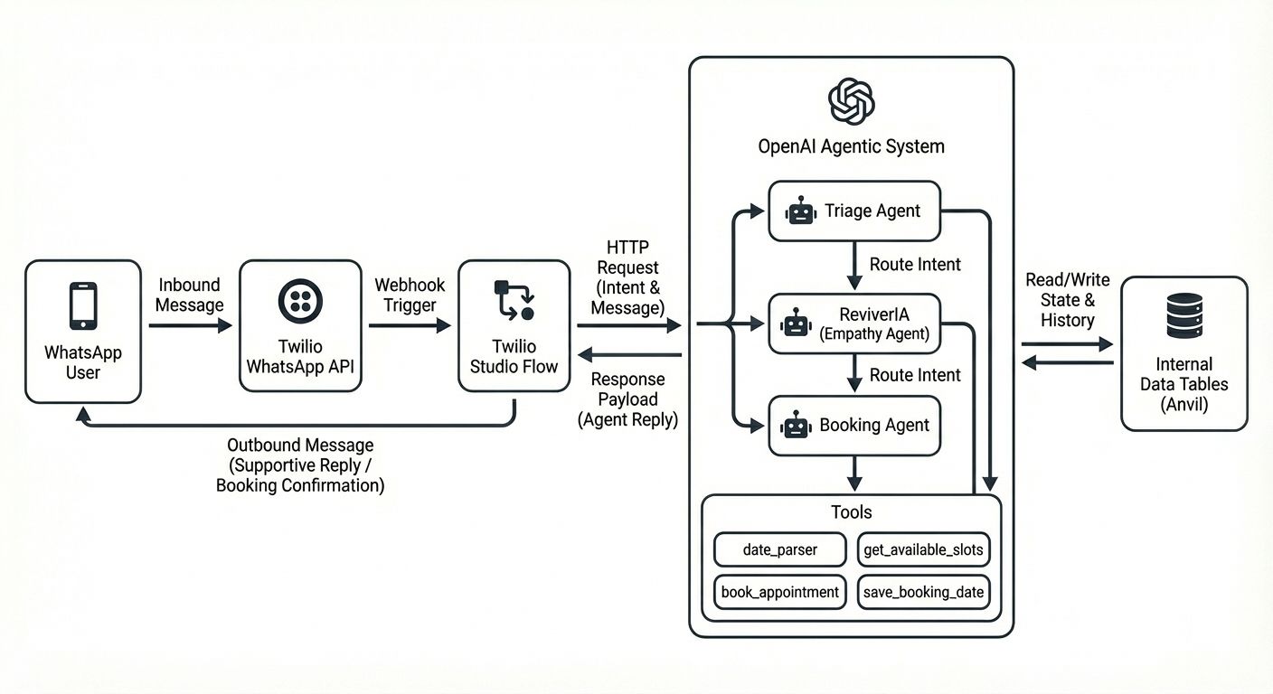 ReviveriA v1 is still a prototype, but it's already demonstrating how agentic systems + WhatsApp + smart scheduling can transform the front door of mental-health care.